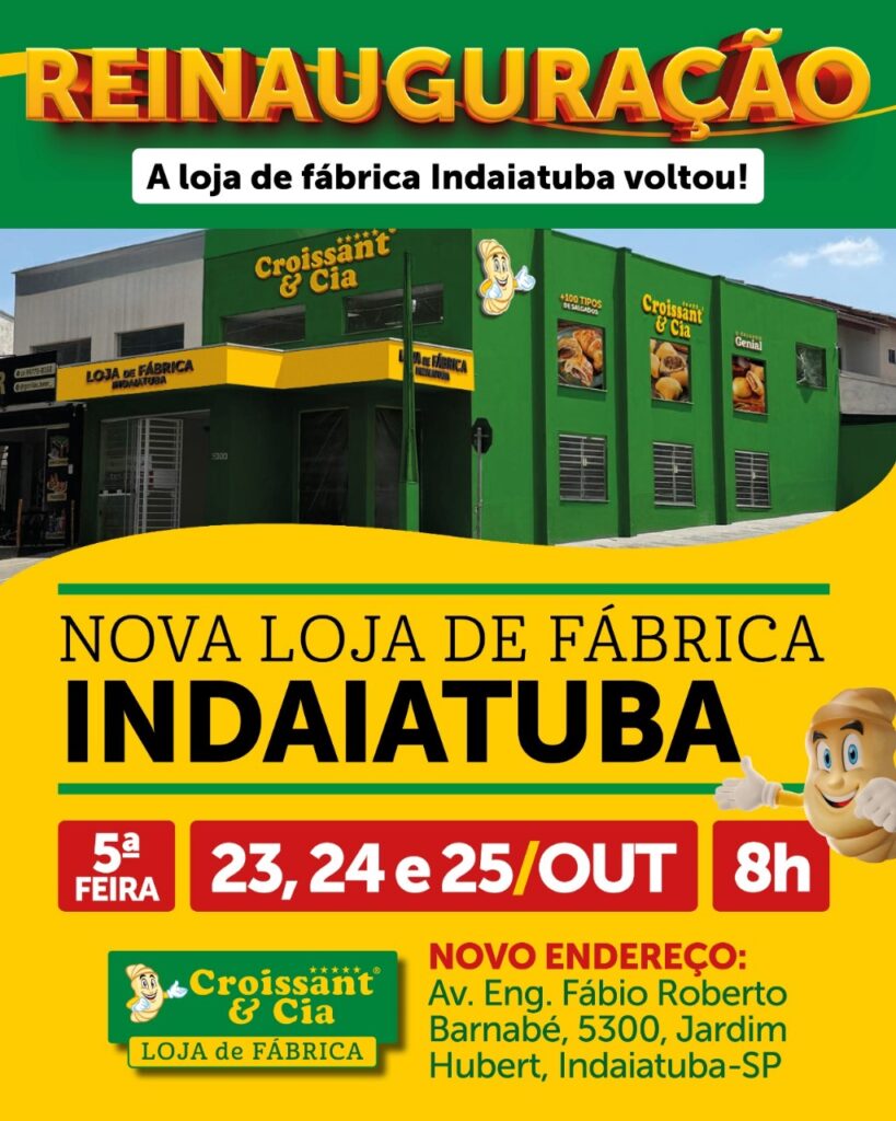 A tradicional Croissant & Cia, referência na produção de salgados congelados, anuncia a reinauguração de sua loja de fábrica em Indaiatuba, em um novo e moderno espaço. A inauguração acontece na próxima quinta-feira (23), na Avenida Engenheiro Fábio Roberto Barnabé, 5300 – Jardim Hubert, com atendimento ao público de segunda a sábado, das 8h às 19h, e aos domingos, das 8h às 12h.