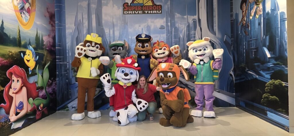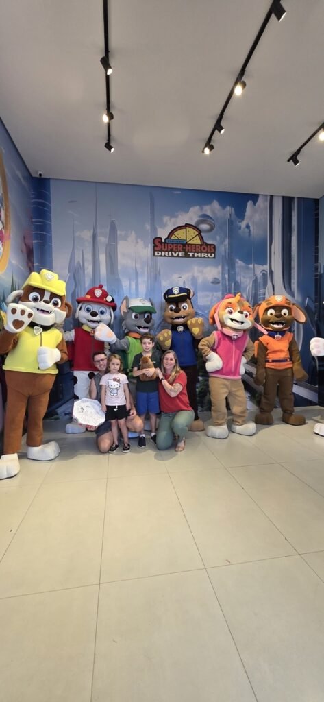Mesmo com o foco no drive thru e na velocidade, o tempo de espera se transforma em parte da diversão. O espaço oferece uma área temática incrível onde o cliente pode estacionar e aguardar. A grande atração do local, que encanta principalmente a criançada, é a presença diária de personagens. A cada dia, um herói ou princesa diferente está presente na sala de interação para tirar fotos e interagir com o público.