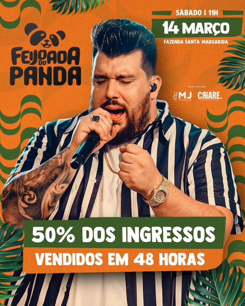 A Feijoada do Panda já é um dos eventos mais comentados do primeiro semestre de 2026. Em apenas 48 horas após o anúncio oficial, o projeto alcançou a marca de 50% dos ingressos vendidos, confirmando o sucesso da edição que acontece no dia 14 de março, na Fazenda Santa Margarida, em Campinas (SP).