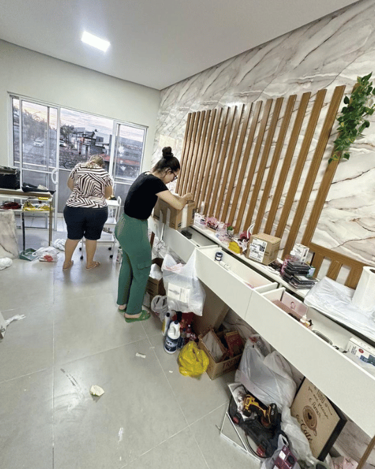 Cada detalhe foi criado com carinho e dedicação, resultando em um estúdio moderno, aconchegante e cheio de personalidade. Na inauguração, viveu um momento ainda mais especial ao ser surpreendida com um pedido de noivado, tornando a data inesquecível.