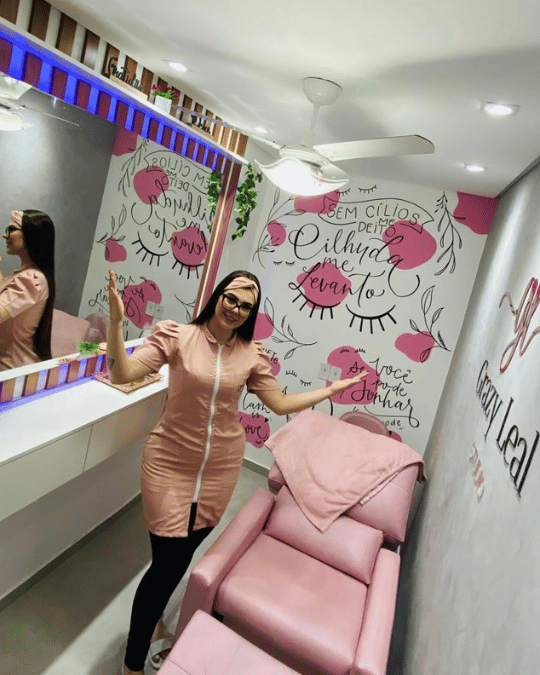 A história da Grazy Leal é inspiradora. Ela iniciou sua carreira em 27 de junho de 2021, quando decidiu fazer o curso de extensão de cílios. Sem estrutura e com poucos recursos, seu primeiro atendimento foi no sofá da casa de uma cliente, pois ainda não tinha maca ou espaço adequado.