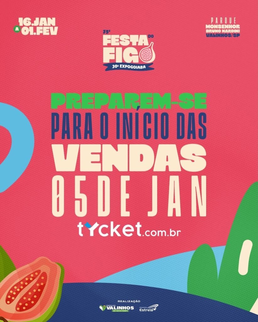 A 75ª Festa do Figo e 30ª Expogoiaba de Valinhos 2026 promete ser a maior e mais histórica edição de todos os tempos. Serão 13 dias de festa, celebrando tradição, cultura, música, gastronomia e a força do agro que fazem parte da identidade da cidade.